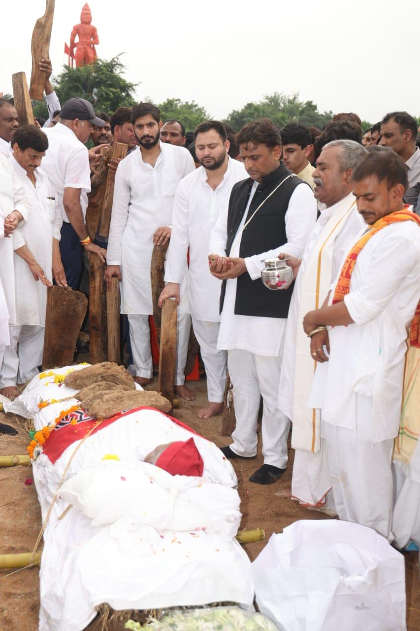 उपमुख्यमंत्री तेजस्वी यादव सैफई में समाजवादी नेता मुलायम सिंह की अंतिम यात्रा में सम्मिलित हुए