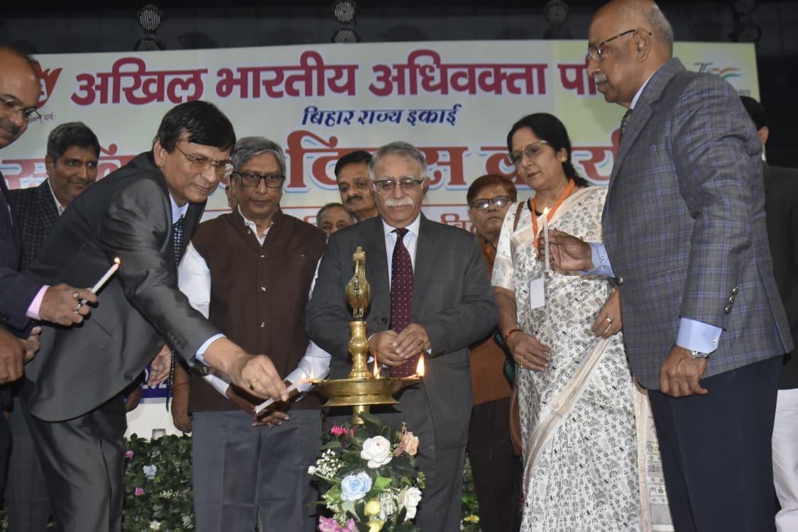 पटना / अखिल भारतीय अधिवक्ता परिषद, बिहार राज्य इकाई द्वारा स्थानीय विद्यापति भवन सभागार में संविधान दिवस कार्यक्रम का आयोजन उत्साहपूर्वक किया गया। कार्यक्रम की विधिवत शुरुआत मुख्य अतिथि सर्वोच्च न्यायालय के माननीय न्यायमूर्ति संजय करोल, विशिष्ट अतिथि न्यायमूर्ति एस कुमार (राष्ट्रीय उपभोक्ता मंच, पटना), एडिशनल एसजीआई डॉ. के एन सिंह, अखिल भारतीय अधिवक्ता परिषद के राष्ट्रीय अध्यक्ष के श्रीनिवास मूर्ति, राष्ट्रीय उपाध्यक्ष सत्य प्रकाश राय, राष्ट्रीय कार्यालय सचिव संतोष कुमार, बिहार प्रदेश अध्यक्ष विनोद कुमार, बिहार प्रदेश महामंत्री संजीव कुमार, कोषाध्यक्ष अर्चना व बिहार एवं झारखंड जोनल सचिव सुनील कुमार द्वारा संयुक्त रूप से दीप प्रज्वलित कर की गई। जन केंद्रित न्याय वितरण प्रणाली विषय आधारित इस कार्यक्रम में पटना उच्च न्यायालय के न्यायमूर्ति पूर्णेन्दु सिंह, राजेश कुमार वर्मा, सी पी सिंह, अलोक कुमार पांडेय, सुनील दत्त मिश्रा सहित सैकड़ों अधिवक्ताओं की उपस्थिति रही। कार्यक्रम को संबोधित करते हुए मुख्य अतिथि सर्वोच्च न्यायालय के माननीय न्यायमूर्ति संजय करोल ने संविधान के इतिहास पर विस्तारपूर्वक चर्चा की।