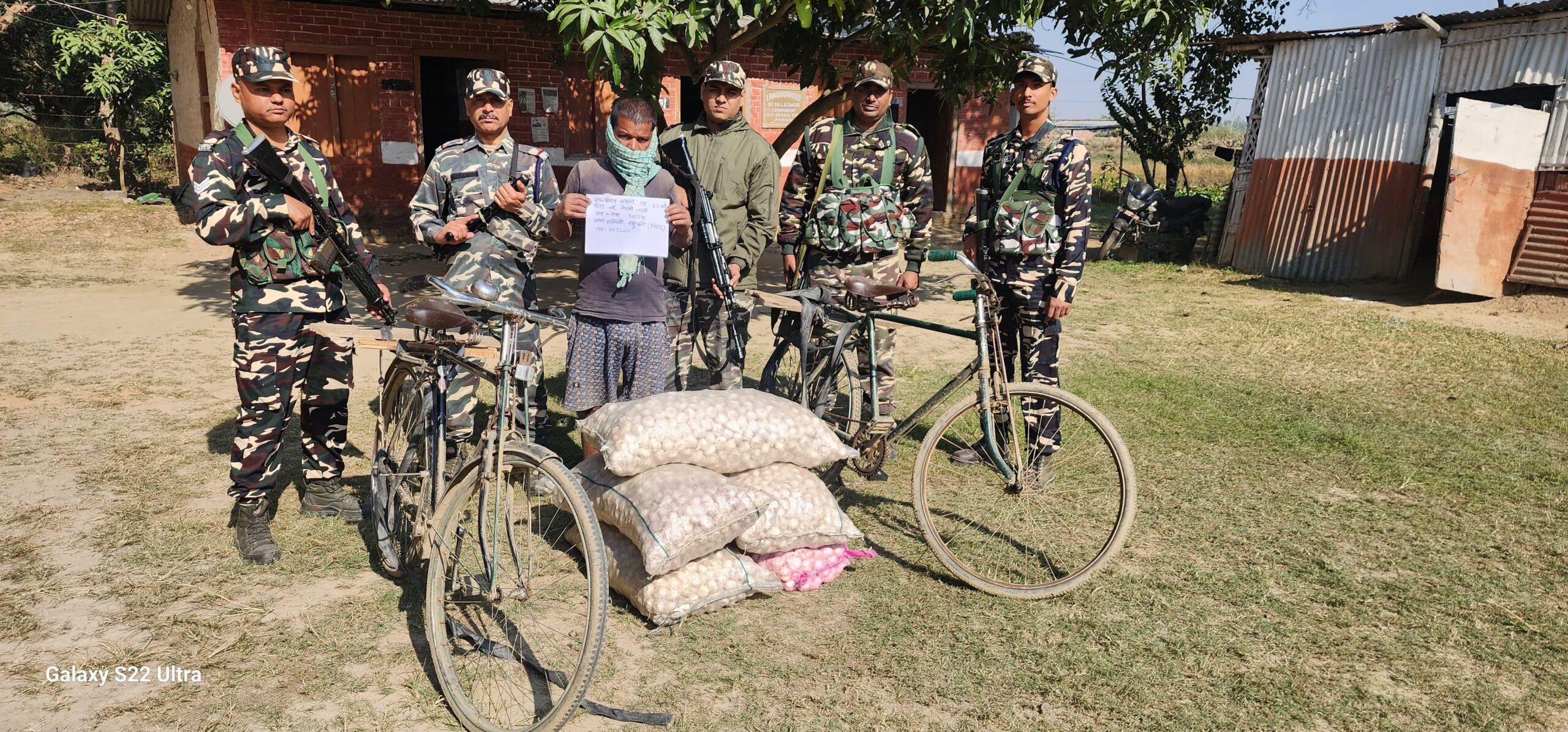 48वीं वहिनी, सशस्त्र सीमा बल, जयनगर के जवानों ने 05 बोरा प्रतिबंधित लहसुन के साथ एक अभियुक्त को दबोचा