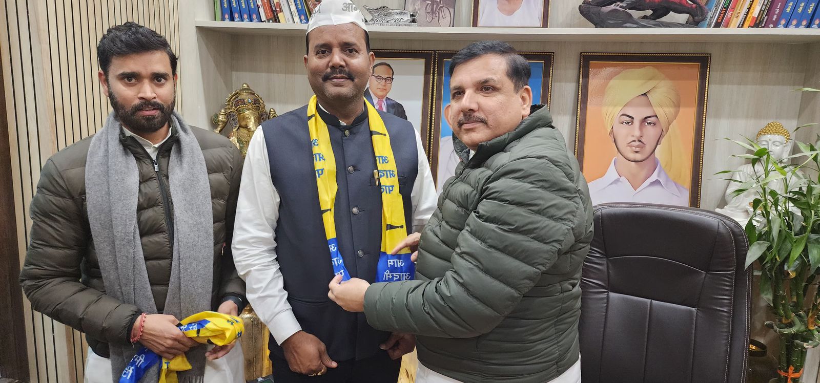 इस अवसर पर आम आदमी पार्टी बिहार के प्रदेश प्रवक्ता डॉ. हेम नारायण विश्वकर्मा और आप नेता बब्लू प्रकाश ने उनका आत्मीय स्वागत किया और भगवान बुद्ध की मूर्ति भेंट की।