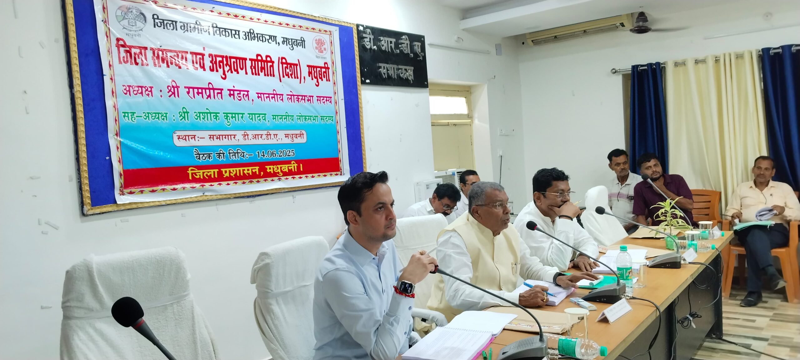 उक्त बैठक में  लोक सभा सदस्य एवं सह अध्यक्ष जिला समन्वय एवं अनुश्रवण समिति,श्री अशोक कुमार यादव, माननीय सदस्य बिहार विधान परिषद श्री घनश्याम ठाकुर, माननीय सदस्य बिहार विधान परिषद श्रीमती अंबिका गुलाब यादव,माननीय सदस्य, बिहार विधान सभा,श्री रामप्रीत पासवान,माननीय सदस्य, बिहार विधान सभा, श्री अरुण शंकर प्रसाद, जिला पदाधिकारी, मधुबनी सह सदस्य सचिव (दिशा), श्री आनंद शर्मा ,मेयर श्री अरुण राय,विभिन्न प्रखंडों के पंचायत समिति प्रमुख, जिला परिषद सदस्यगण एवं उप विकास आयुक्त सुमन प्रसाद साह,एडीएम मुकेश रंजन,नगर आयुक्त अनिल चौधरी,सिविल सर्जन डॉ हरेंद्र कुमार,डीपीआरओ परिमल कुमार सहित जिले के सभी वरीय पदाधिकारी उपस्थित थे।