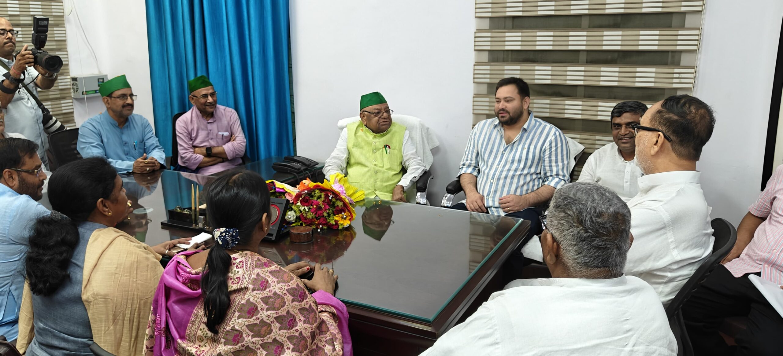 इस अवसर पर प्रदेश प्रवक्ता एजाज अहमद ने बताया कि इस अवसर पर प्रदेश अध्यक्ष के कक्ष में प्रदेश अध्यक्ष श्री मंगनी लाल मंडल जी के आसन ग्रहण करने के बाद नेता प्रतिपक्ष श्री तेजस्वी प्रसाद यादव ने शॉल और बुके देकर और मुंह मीठा कराकर प्रदेश अध्यक्ष जी का स्वागत किया।