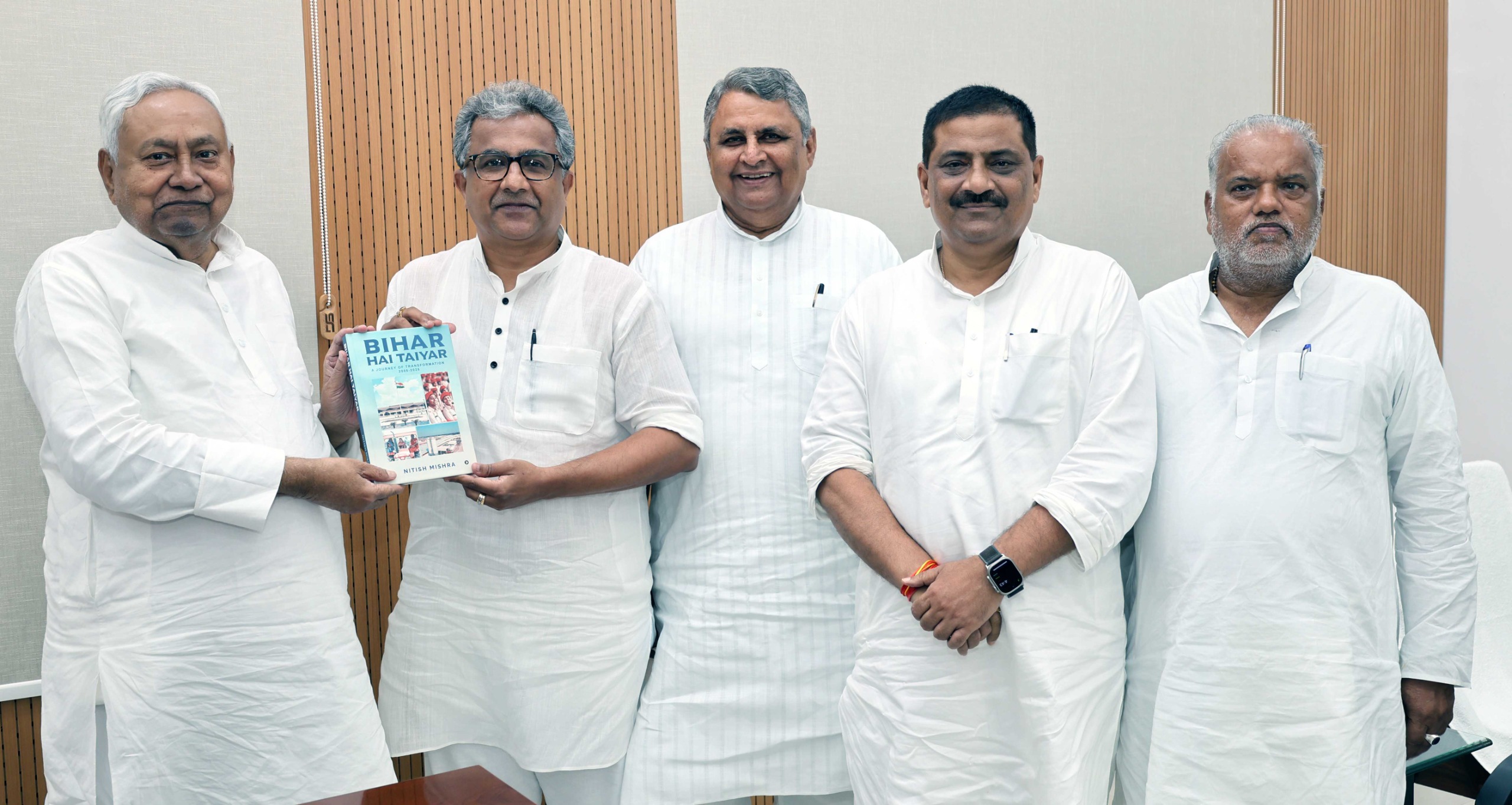उद्योग मंत्री नीतीश मिश्रा ने स्वरचित पुस्तक ‘Bihar Hai Taiyar- A journey of Transformation 2005-2025’ की प्रथम प्रति भेंट की