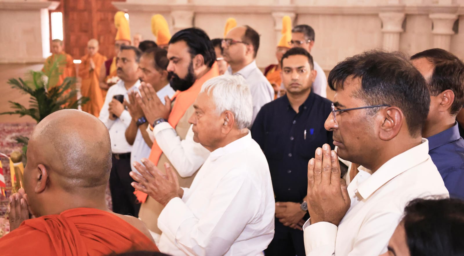 मुख्यमंत्री ने स्मृति स्तूप के भू-तल पर अधिष्ठापित भगवान बुद्ध की पूजा-अर्चना कर राज्य में सुख, शांति एवं समृद्धि की कामना की।